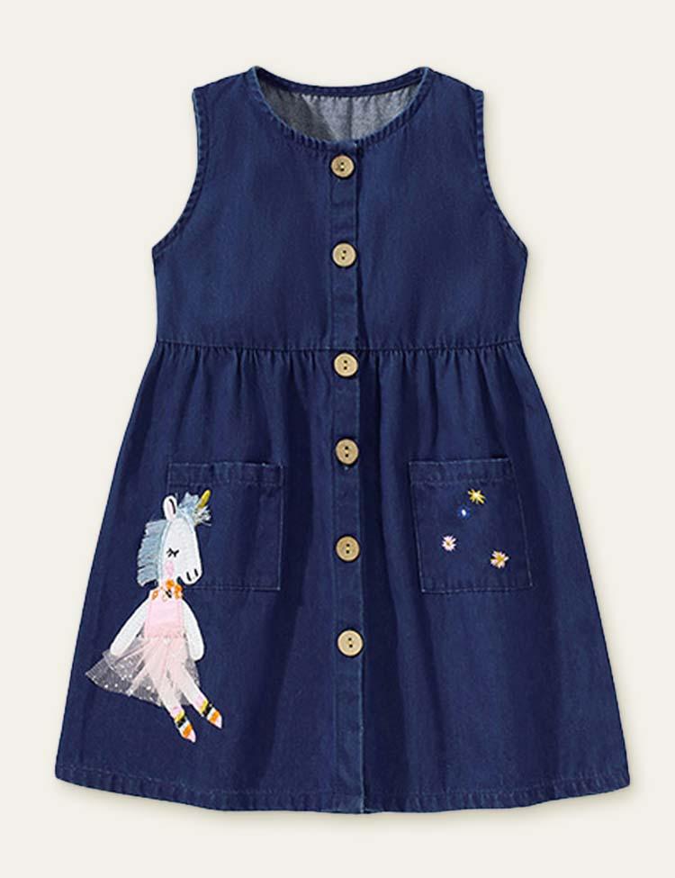Unicorn Appliqu¨¦ Denim Dress