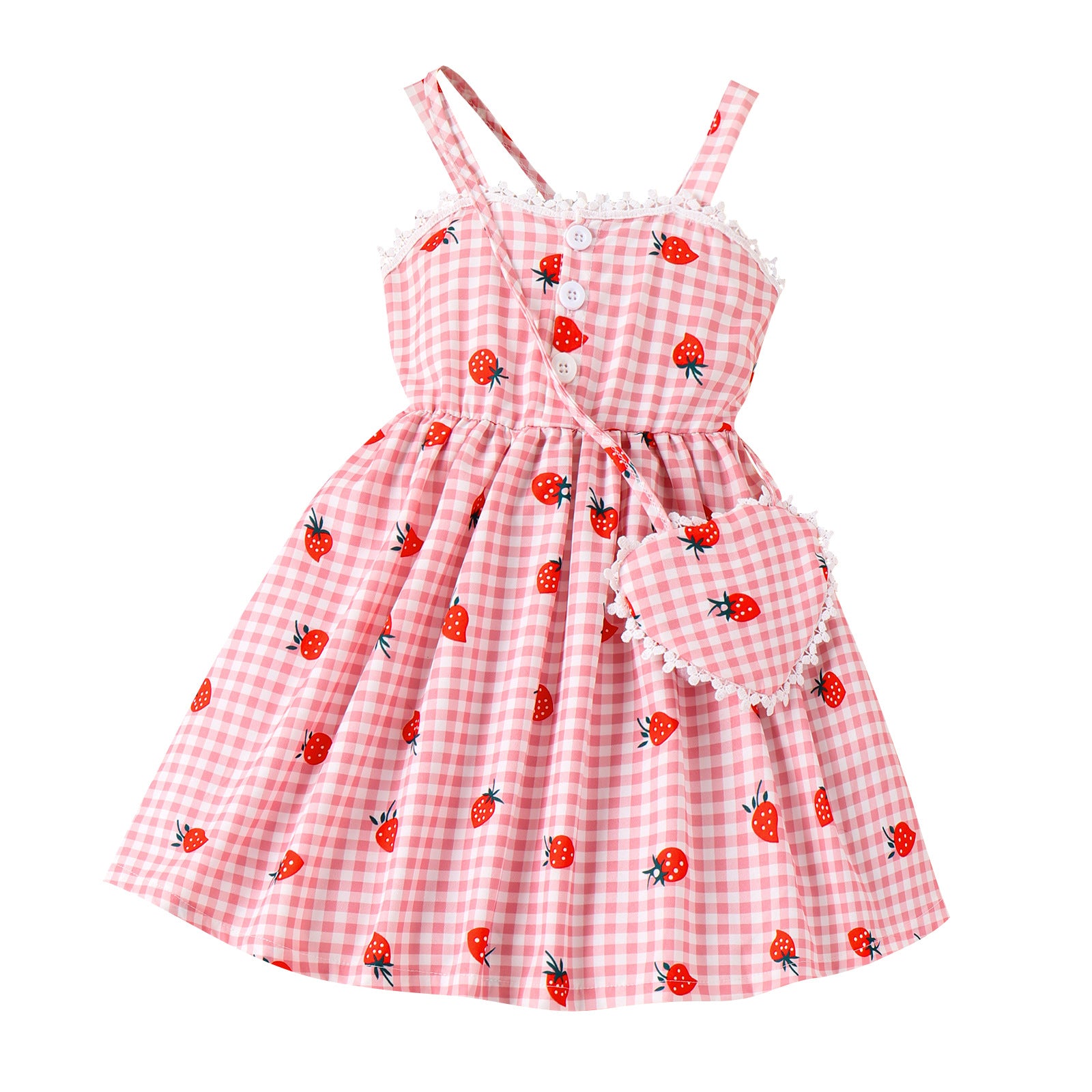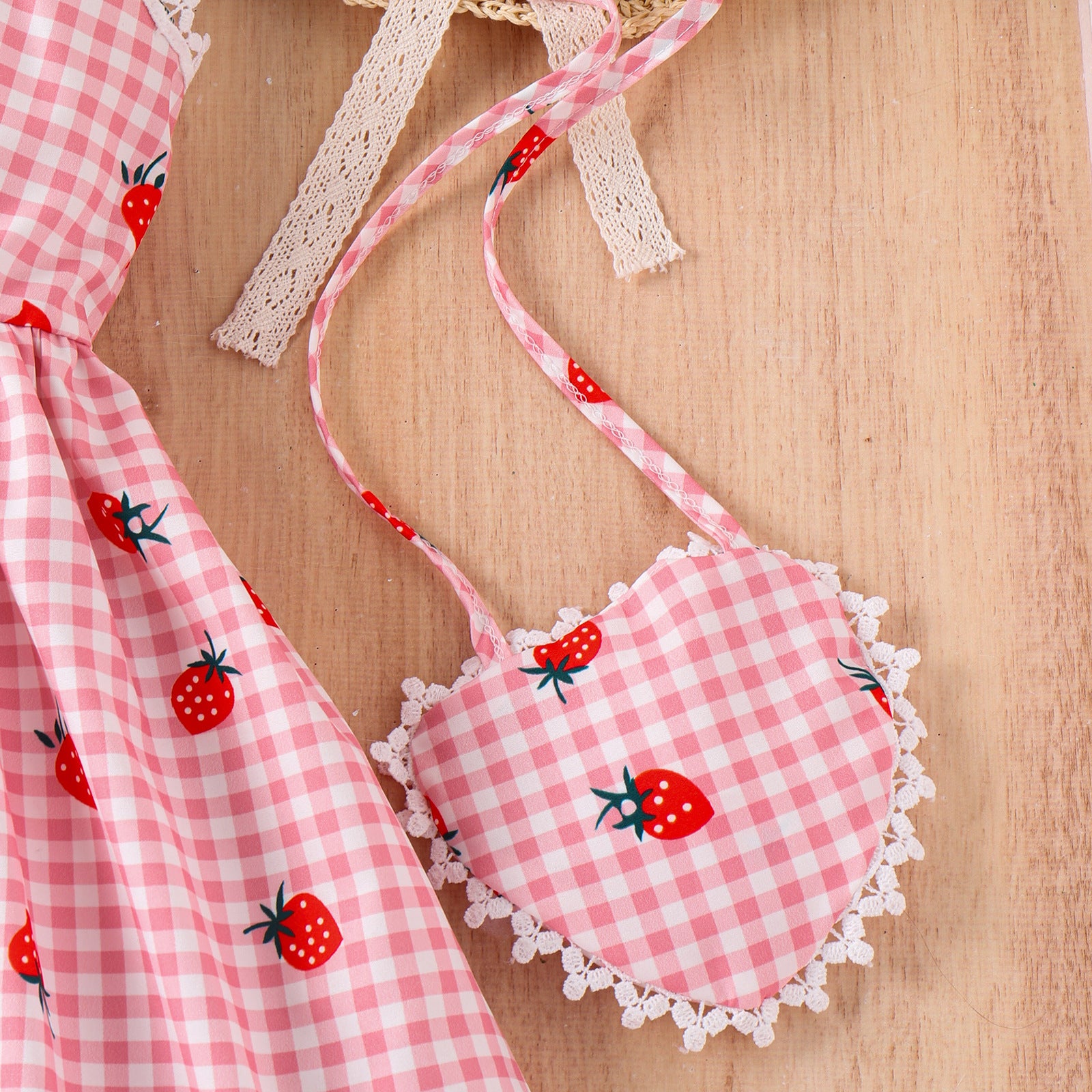 Strawberry Printing Pastoral Style Dress + Bag