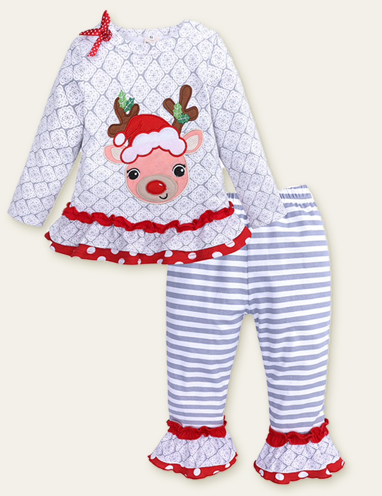 Christmas Elk Appliqué Striped Set