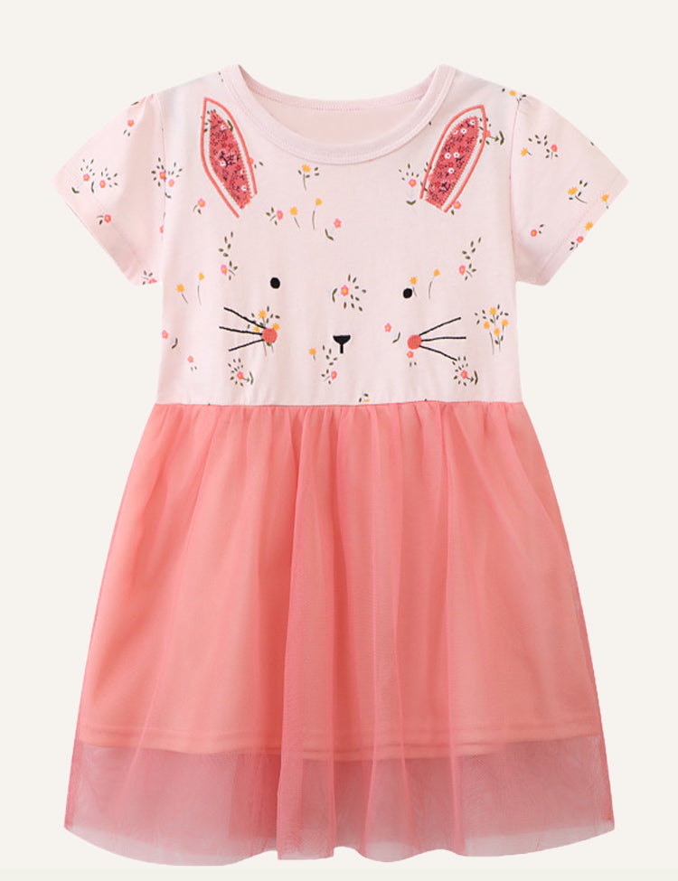Rabbit Printed Short Sleeve Dress