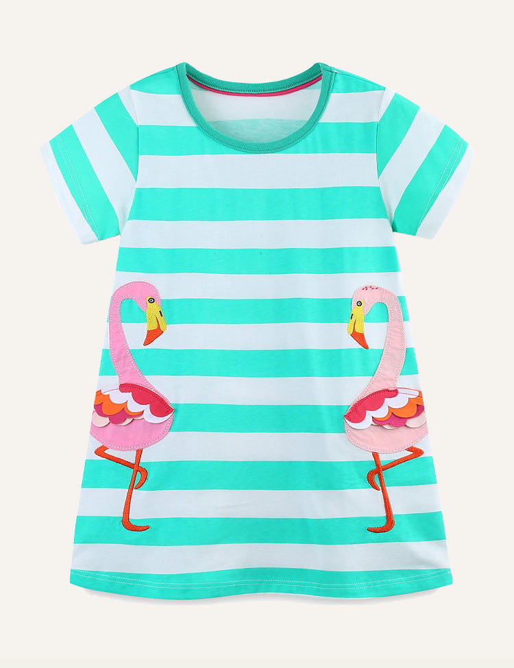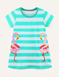 Children's Cute Animal Embroidered Patch Short Sleeve Dress