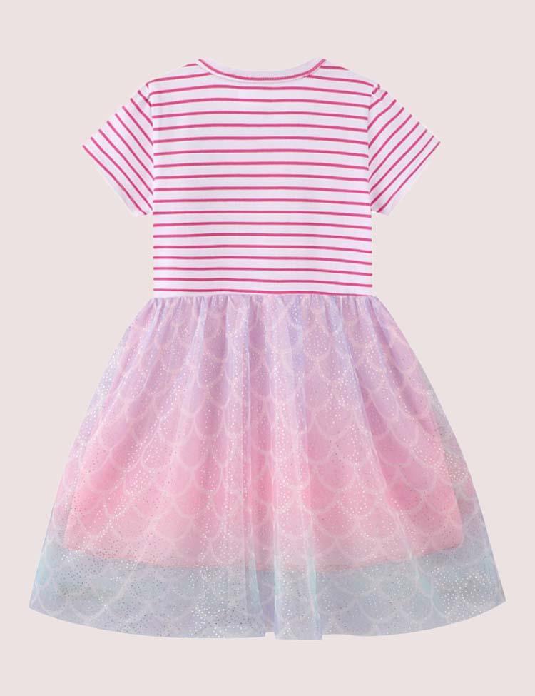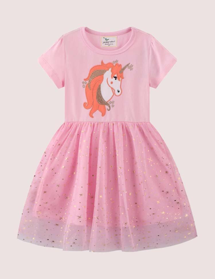 Toddler Girl Unicorn Applique Short Sleeves Mesh Splice Dress