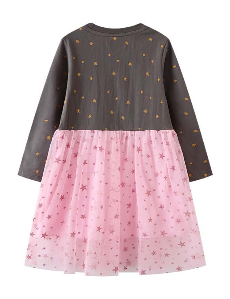 Toddler Girl Unicorn Appliqu¨¦ Long Sleeve Mesh Splice Dress