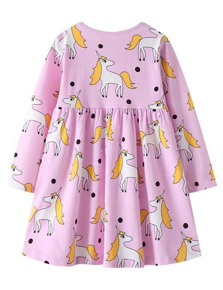 Toddler Girl Unicorn Print Long Sleeve Splice Dress