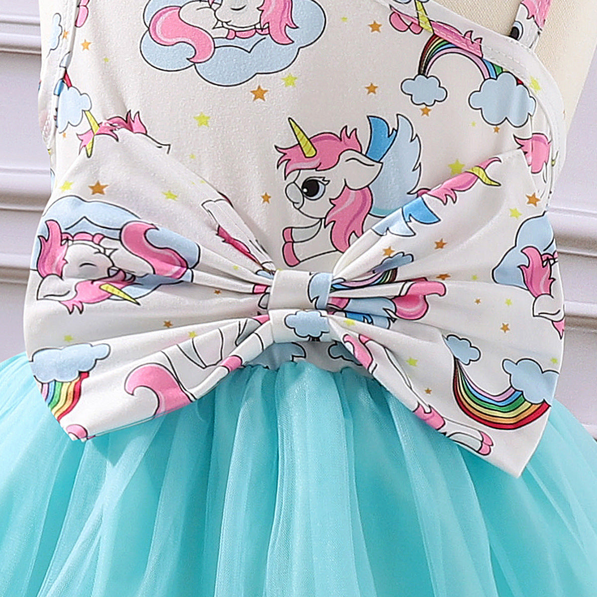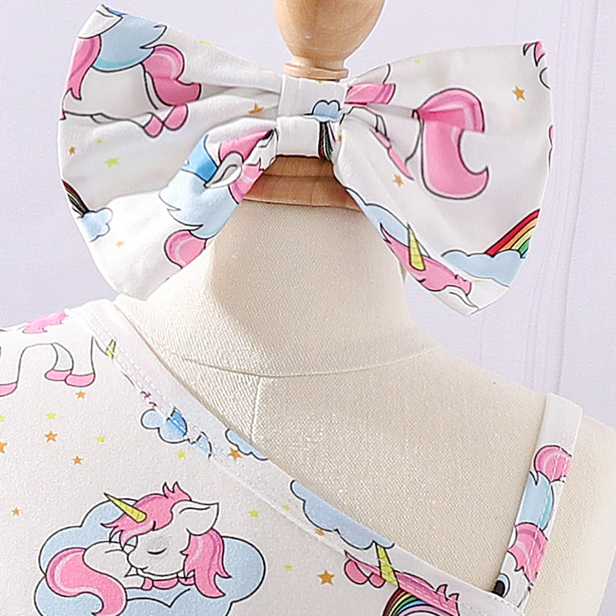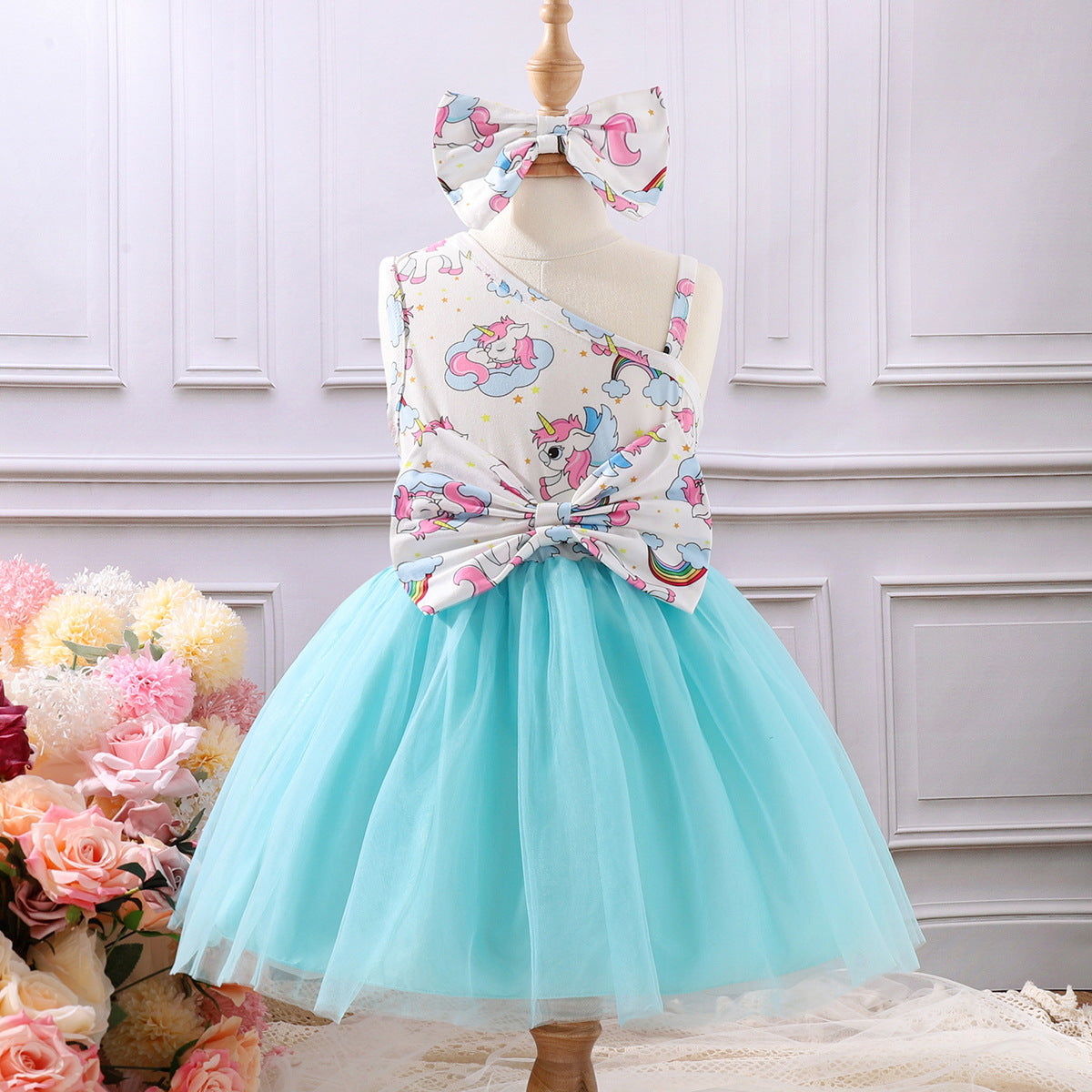 Oblique Shoulder Cartoon Sling Unicorn Print Dress