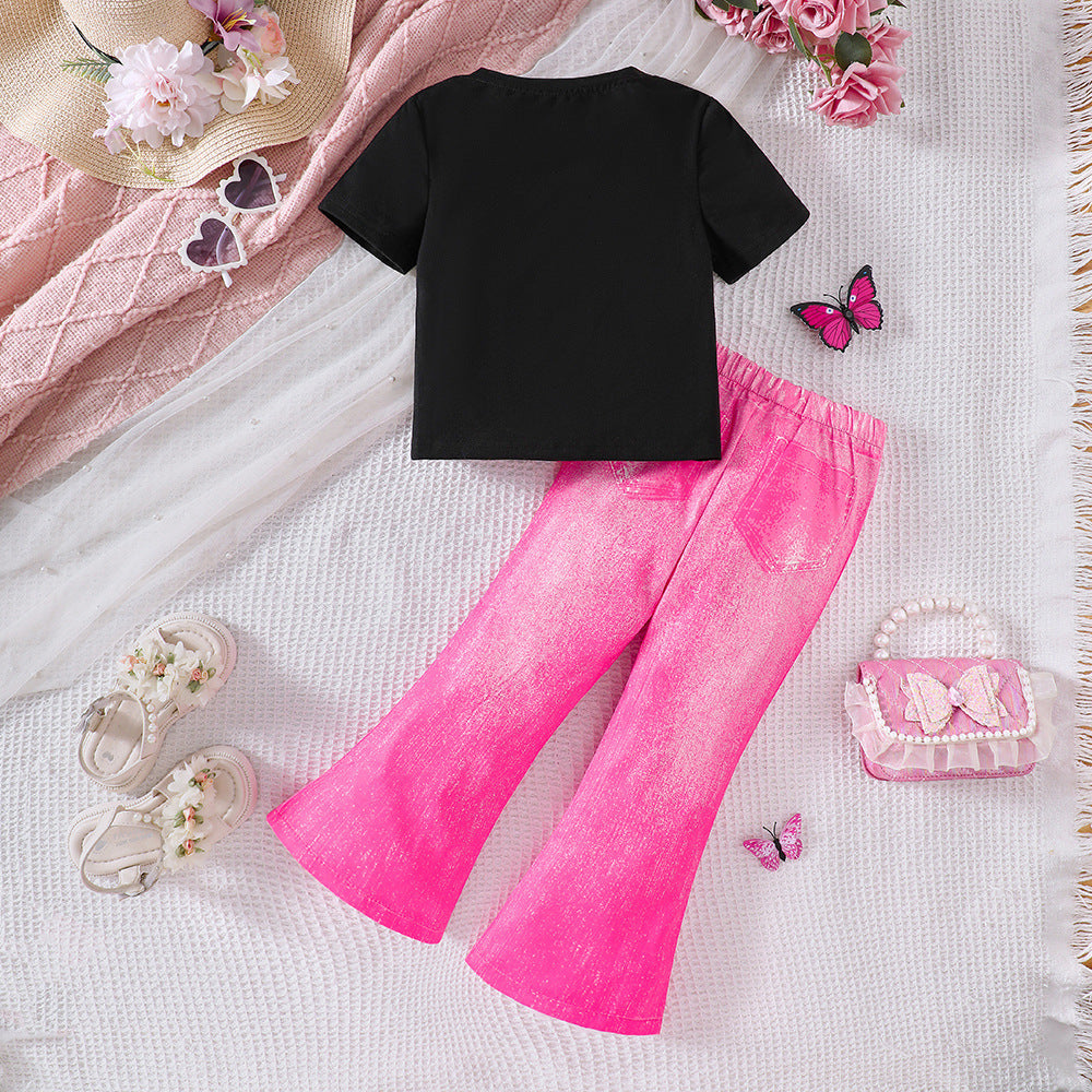 Butterfly Print T-shirt + Bell-Bottom Pants