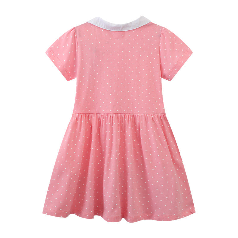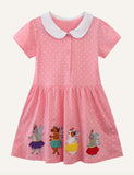 Children's Cartoon Embroidered Lapel Short Sleeve Dress