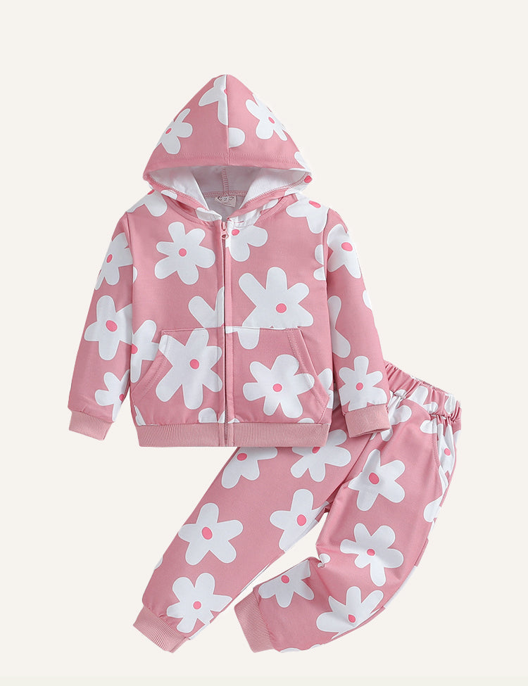 Girls' Suit Long-Sleeved Printed Hooded Jacket Casual Pants Two-Piece Set