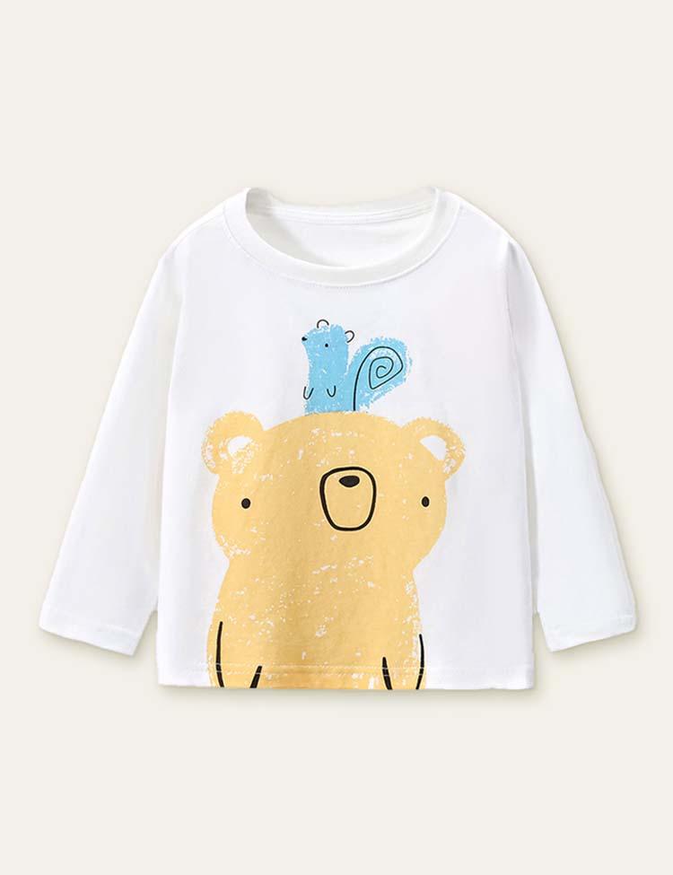 Bear and Squirrel Printed Long-Sleeved T-shirt