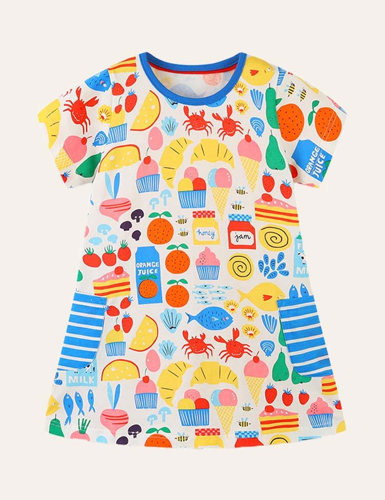 Toddler Girl Cartoon Printed Casual Short Sleeves Dress