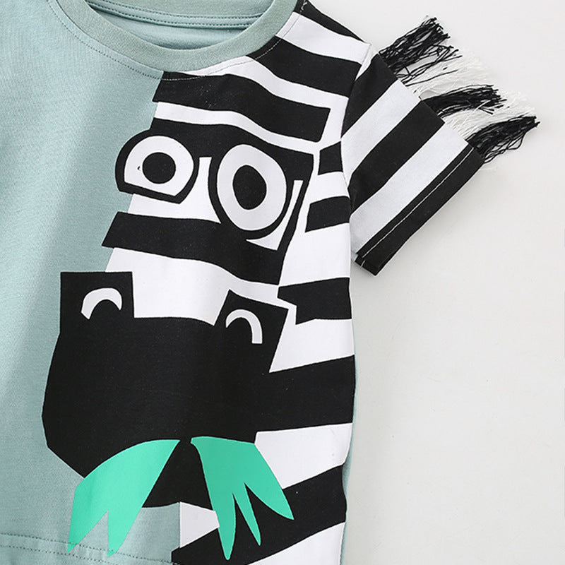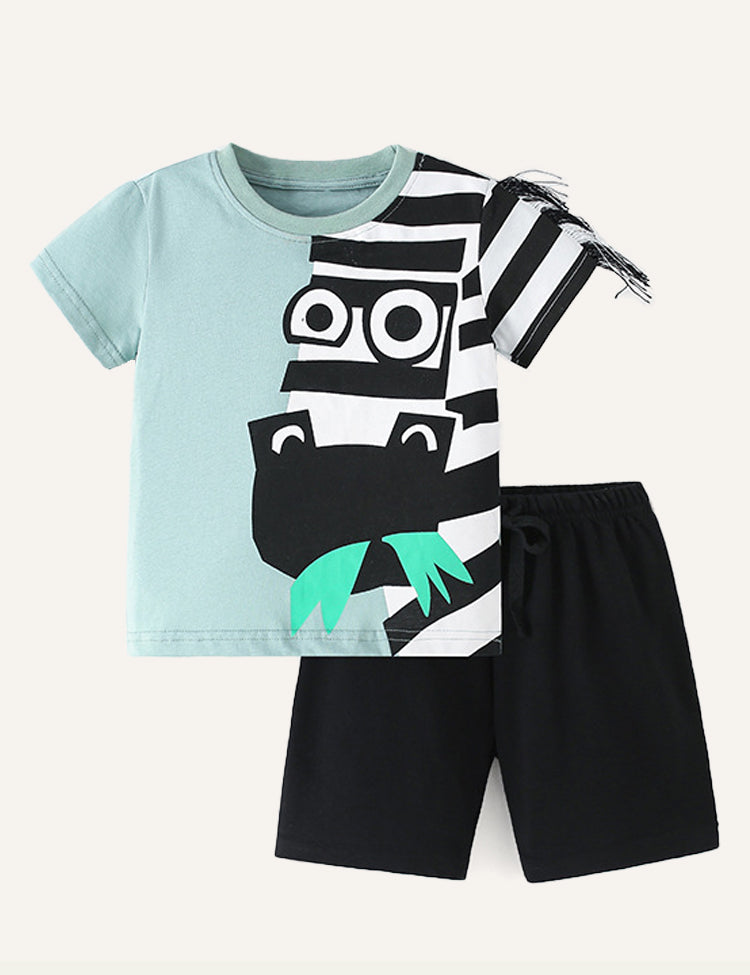Children's Cartoon Printed Casual Short Sleeve Suit