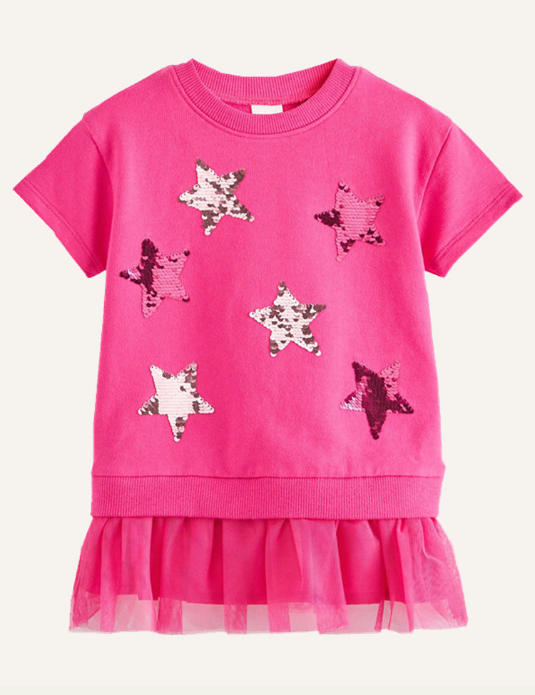 Children's Embroidery Cartoon Sequins Embroidery Mesh Dress