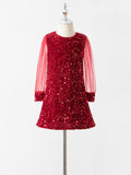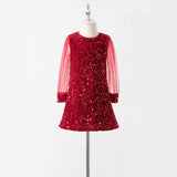 Children's mesh stitching long-sleeved sequined dress princess dress