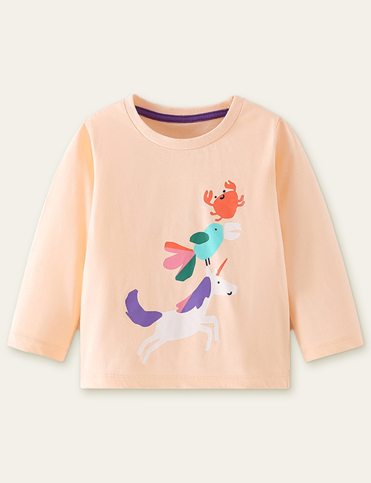 Crab and Unicorn Printed Long Sleeve T-shirt