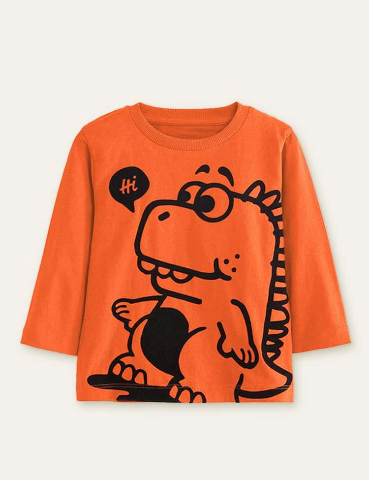 Cute Dinosaur Printed Long-Sleeved T-shirt