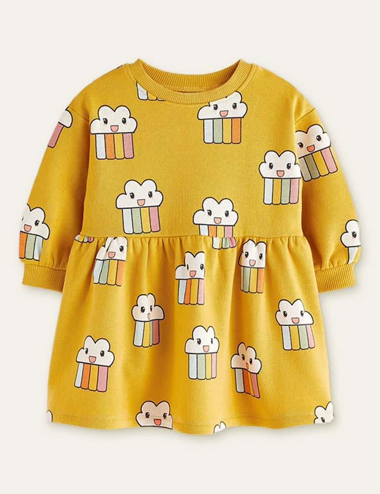 Cute Rainbow Clouds Printed Dress