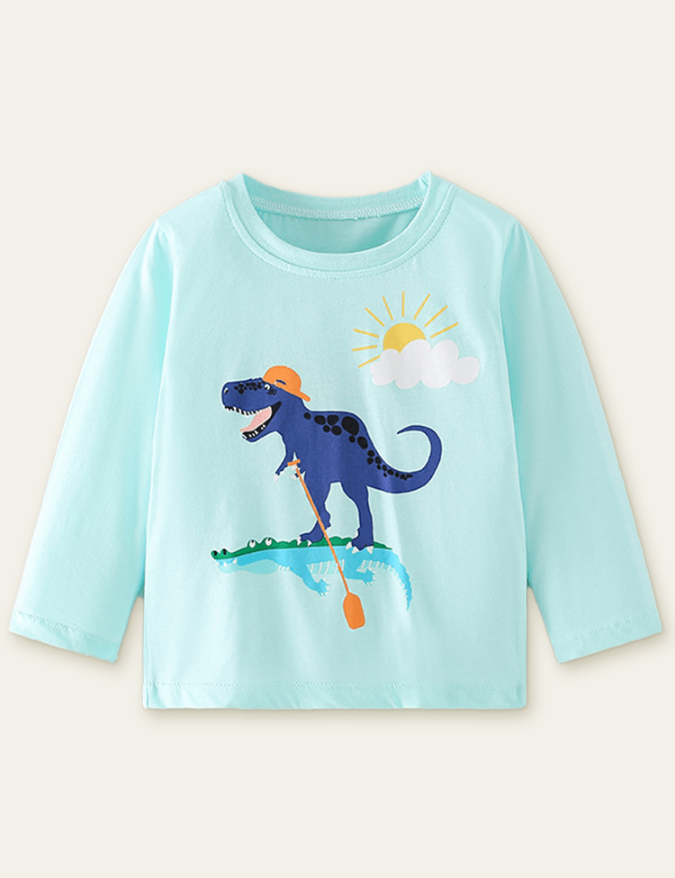 Dinosaur and Alligator Printed Long Sleeve T-shirt