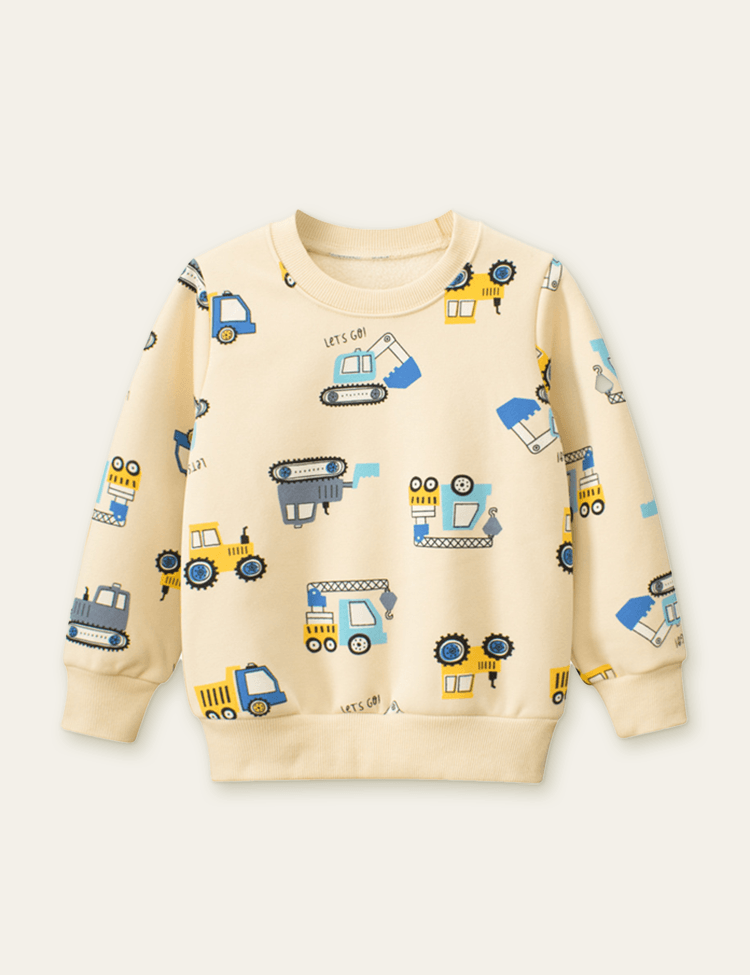 Engineering Vehicle Printed Long-Sleeved Sweatshirt