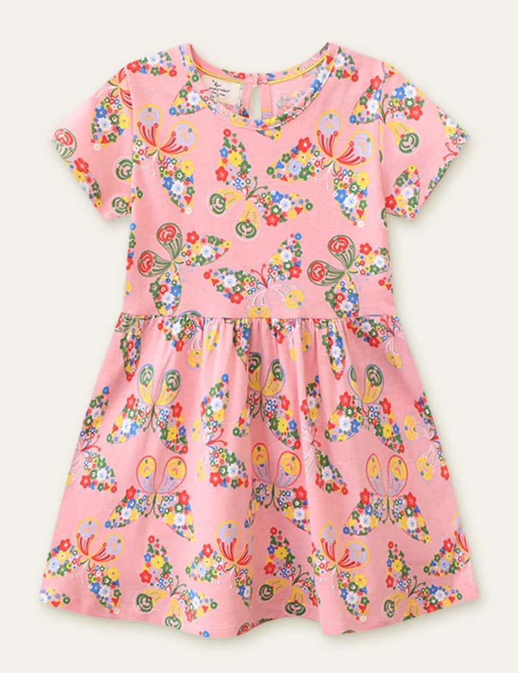 Toddler Girl Floral Butterfly Printed Splice Dress