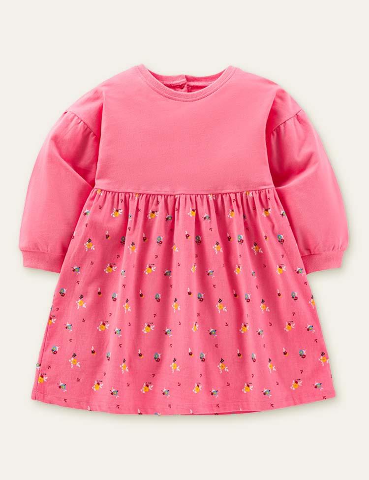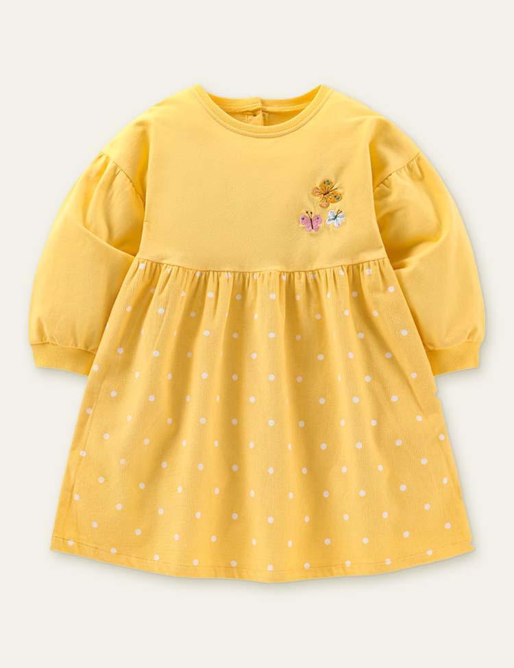 Floral Printed Butterfly Embroidered Long Sleeve Dress