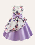 Toddler Girl Floral Embroidered Sleeveless Bow Belted Crew Neck Dress