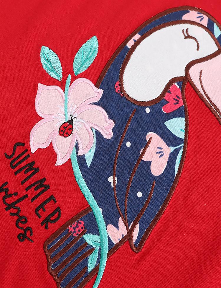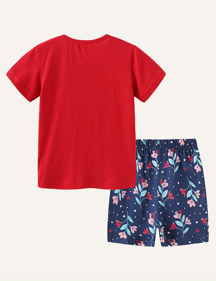 Girl's Cartoon Embroidered Short Sleeve Suit