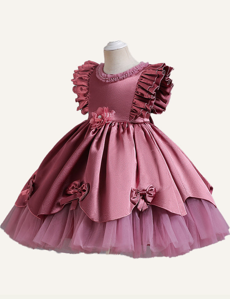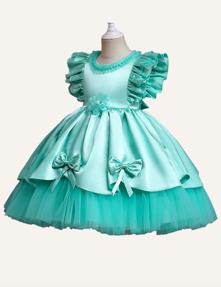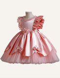 Girl's Gown Satin Bow Puffy Mesh Princess Dress
