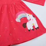 Girls' Unicorn Affixed Cloth Embroidered Long Sleeve Dress
