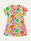 Pocket Short Sleeve Cartoon Round Neck Dress