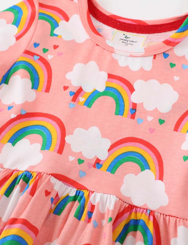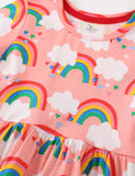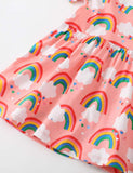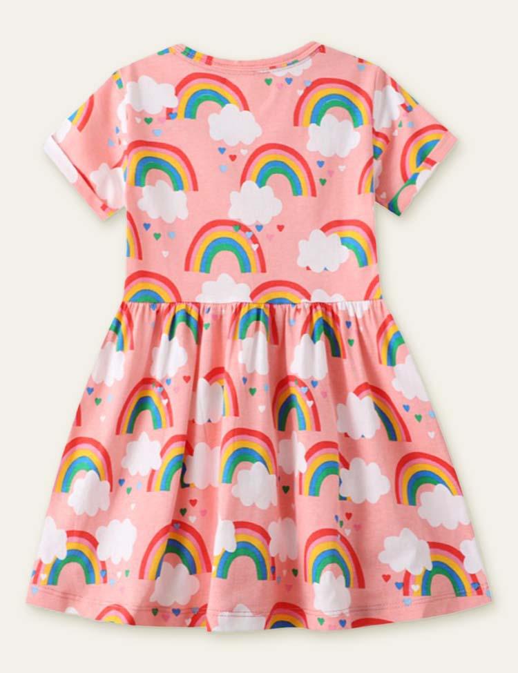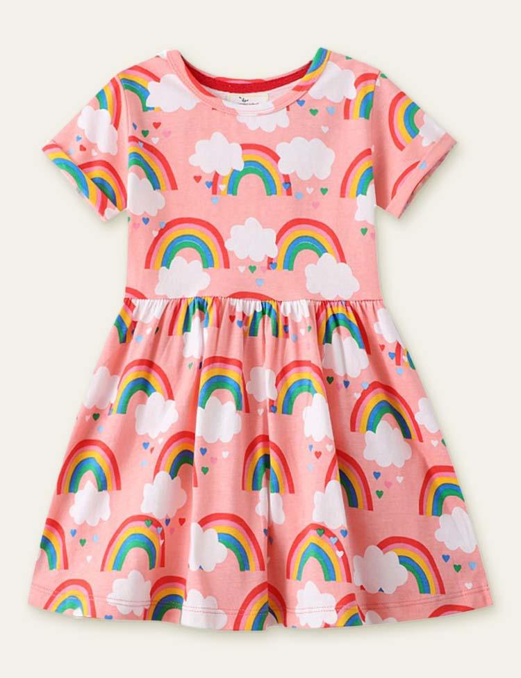 Toddler Kid Rainbow Full Printed High Waist Short Sleeves Dress