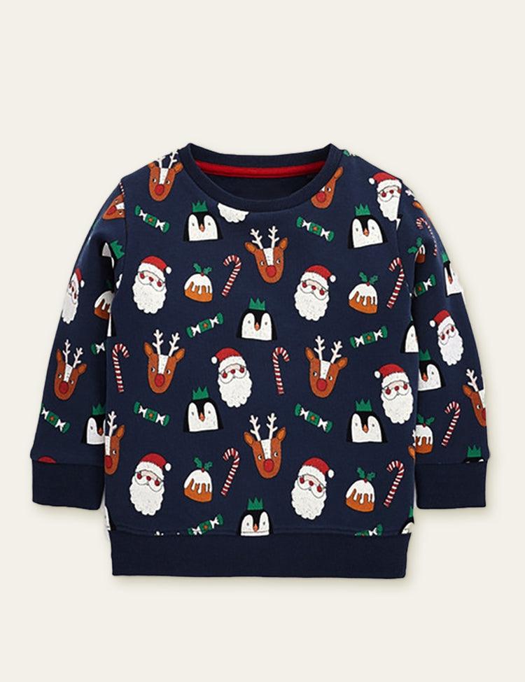 Toddler Santa Elk Candy Printed Pull Over Sweatshirt