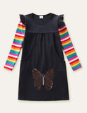 Sequined Butterfly Rainbow Long Sleeve Dress