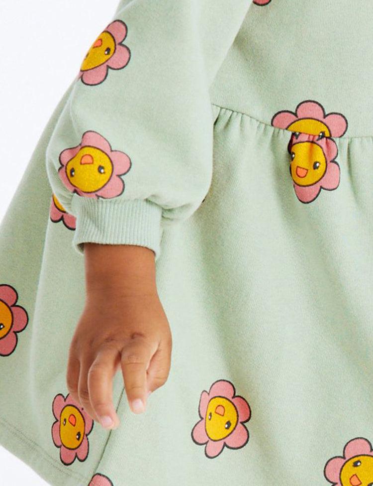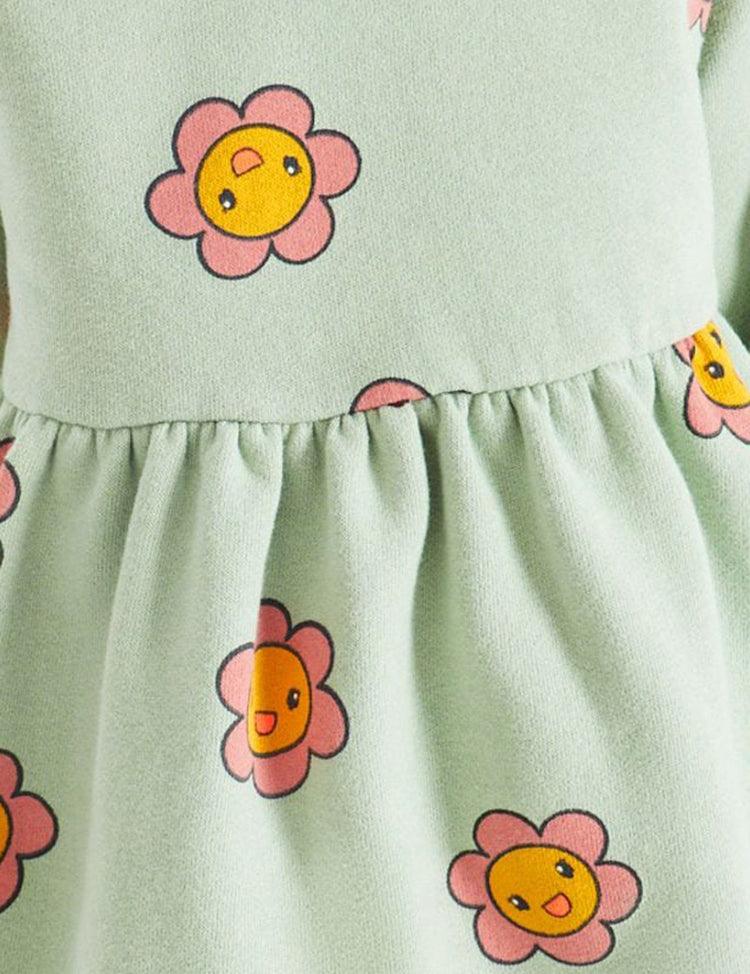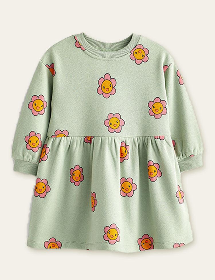 Smiling Flower Printed Long Sleeve Dress