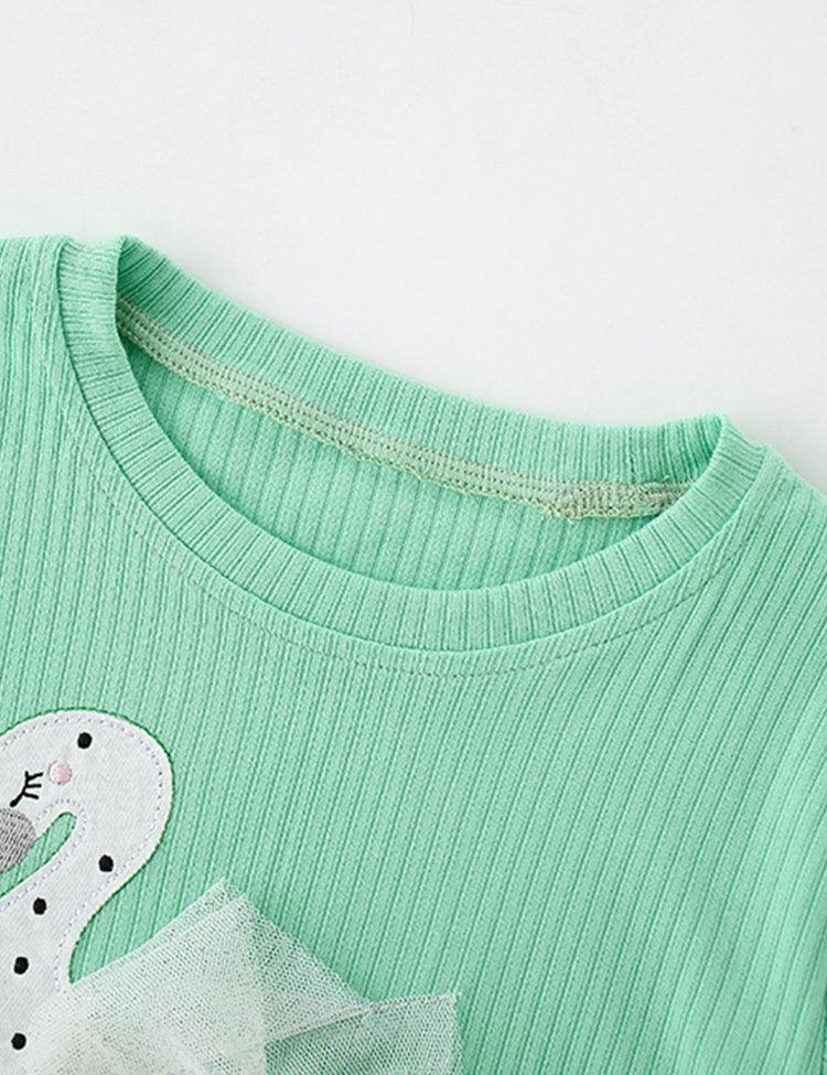 Swan Appliqu¨¦ Mesh Long Sleeve Dress