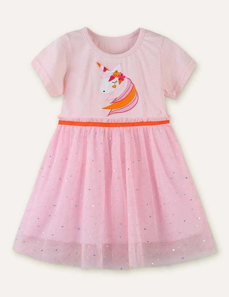 Unicorn Appliqu¨¦ Embroidered Mesh Dress