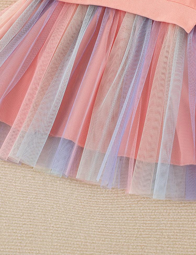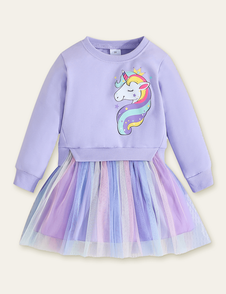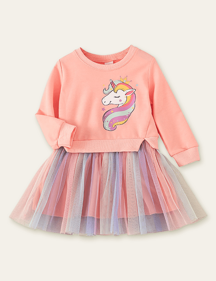 Toddler Unicorn Printed Mesh Long Sleeve Dress