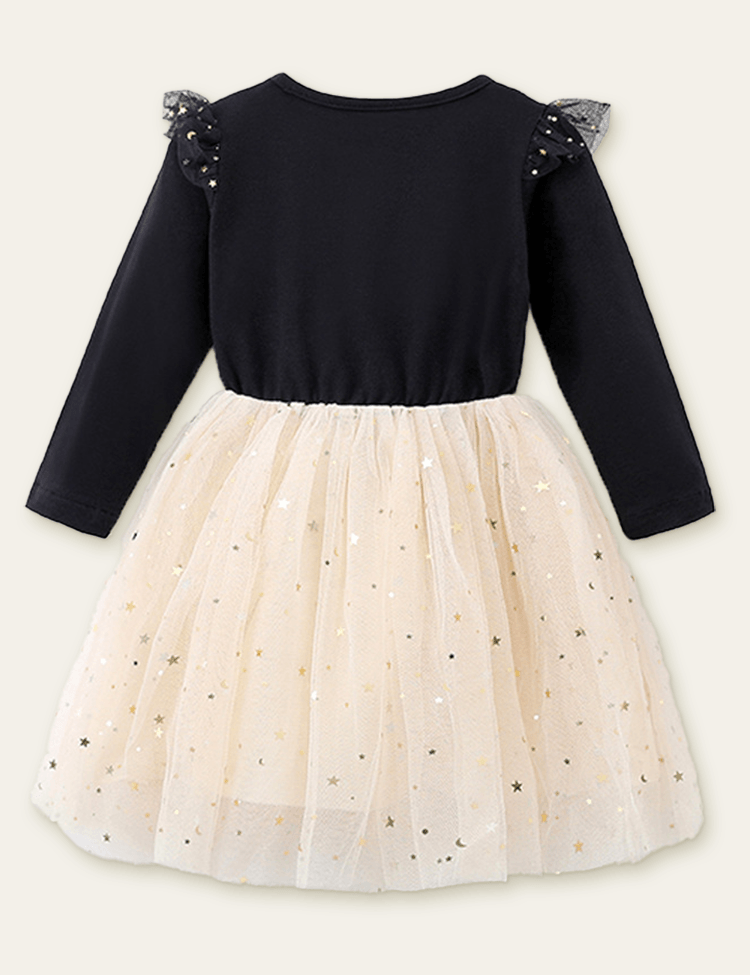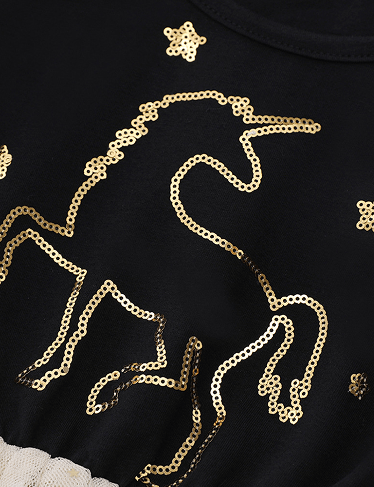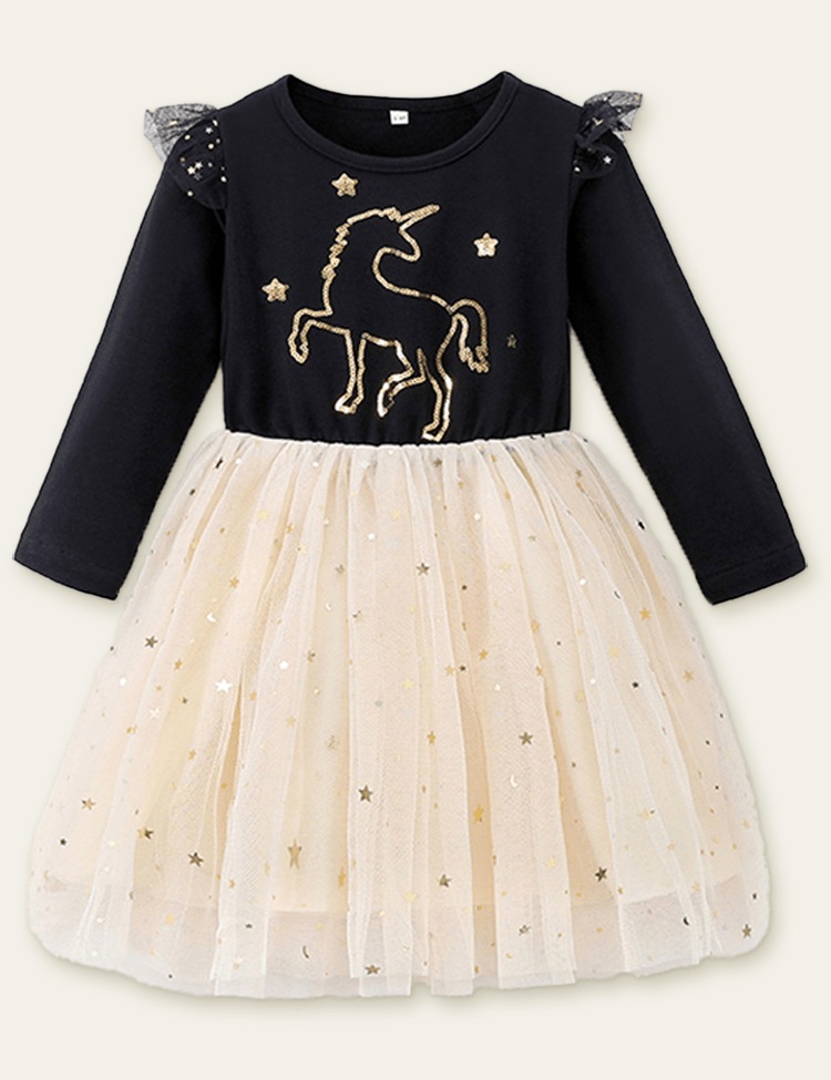 Toddler Unicorn Sequined Embroidered Long Sleeves Mesh Dress